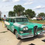 A very rare version of the 58 Edsel Roundup wagon. While they made only 963 Roundup two door wagons in 1958, this is one of only 12-15 that were made for the purpose of being a regional service rep. vehicle for the Edsel dealer network. Along with the unique green color, this car is equipped with a lot of options like power steering and brakes, power seat and windows, Town and Country radio, power antenna, and air conditioning! |